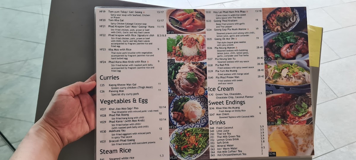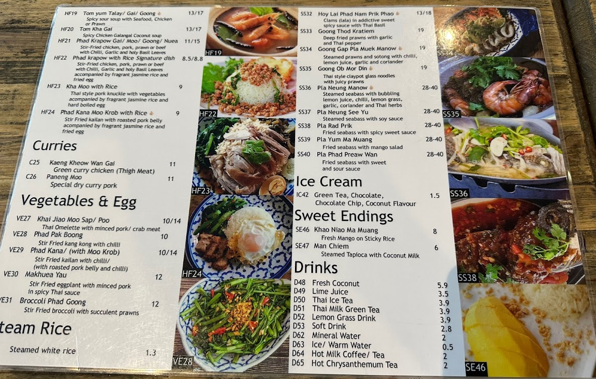 Guests can enjoy a variety of dishes ranging from hearty mains like Phad Krapow with Rice and Moo Yang grilled pork neck to lighter options such as Som Tum and Thai Green Mango Salad. The menu also includes classic soups like Tom Yum and Kuey Teow Nam Tok, alongside sweet endings like Khao Niao Ma Muang, perfect for winding down a meal.